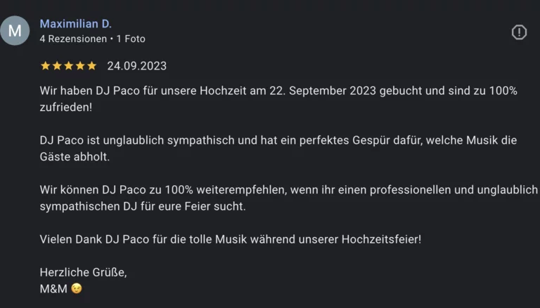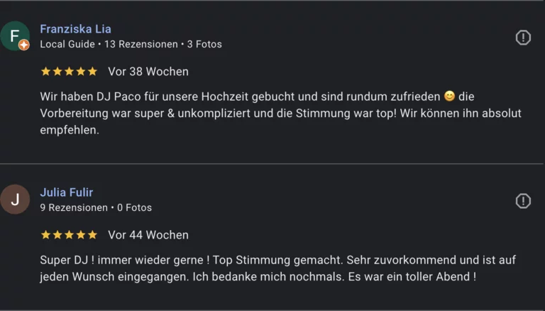 Das sagen Paare über mich auf Google - Echte Bewertungen. Echte Emotionen.